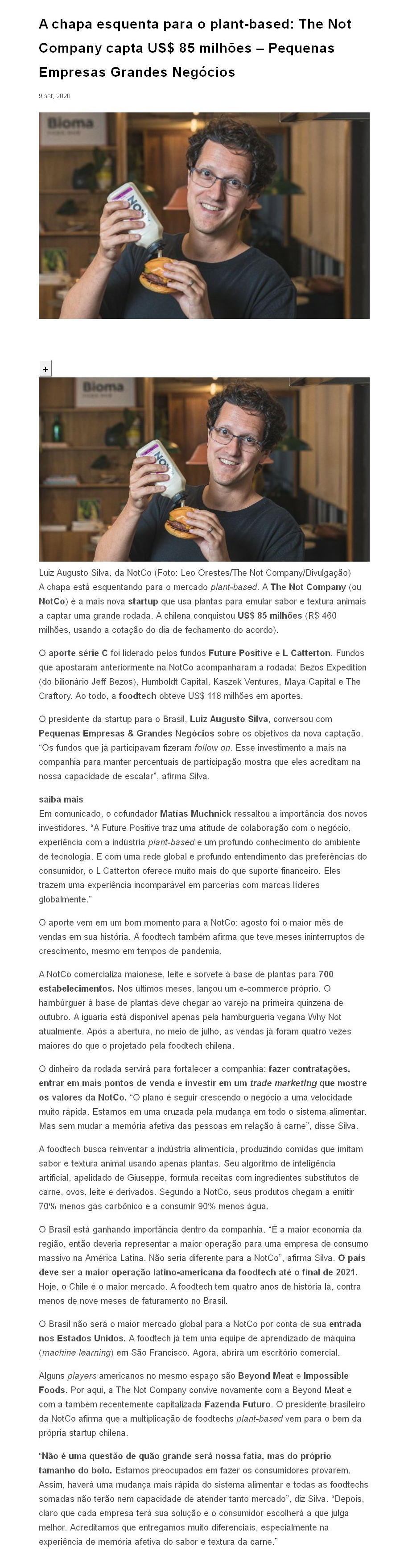 A chapa esquenta para o plant-based: The Not Company capta US$ 85 milhões – Pequenas Empresas Grandes Negócios