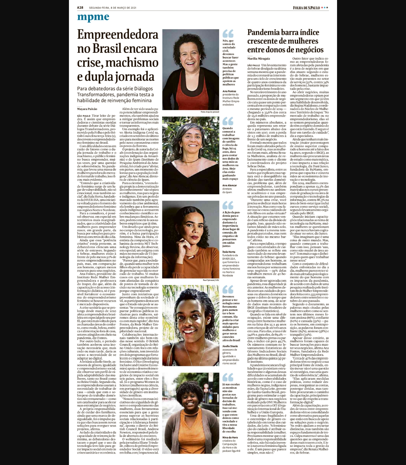 A28 SEGUNDA-FEIRA, 8 DE MARÇO DE 2021FOLHA DE S.PAULO *mpme Empreendedora no Brasil encara crise, machismo e dupla jornada Para debatedoras da série D