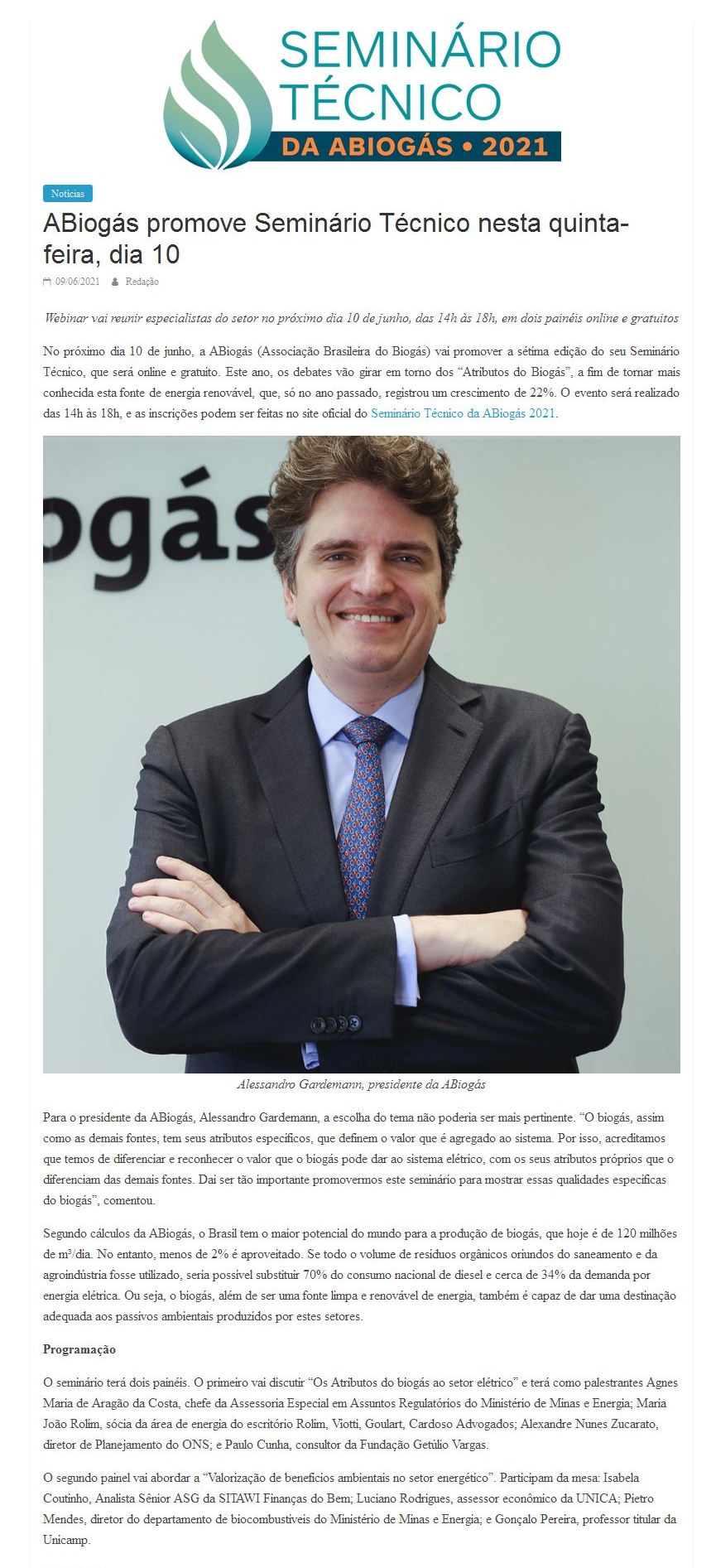 ABiogás promove Seminário Técnico nesta quinta-feira, dia 10