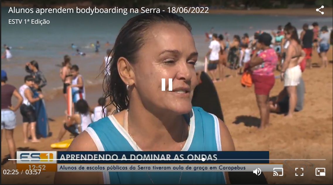 Alunos aprendem bodyboarding na Serra