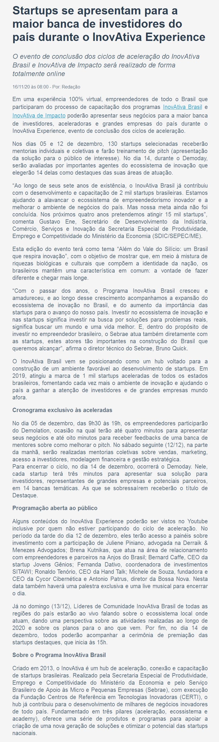 16/11/2020 - Agência Sebrae de Notícias