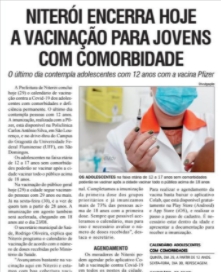 ATRIBUNA NITERÓI ENCERRA HOJE A VACINAÇÃO PARA JOVENS COM COMORBIDADE O último dia contempla adolescentes com 12 anos com a vacina Pfizer A Prefeitura