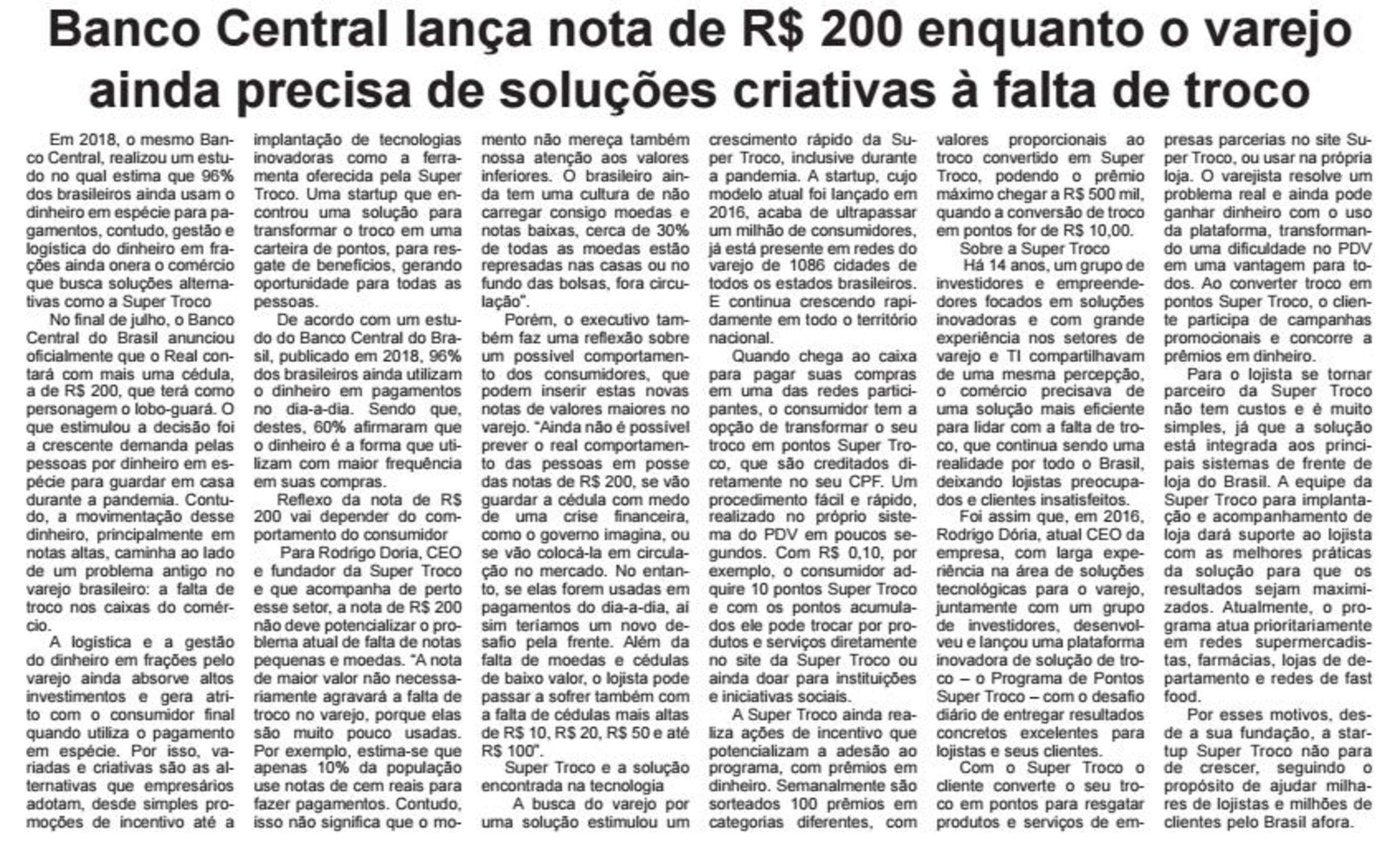 Banco Central lança nota de R$ 200 enquanto o varejo ainda precisa de soluções criativas à falta de troco