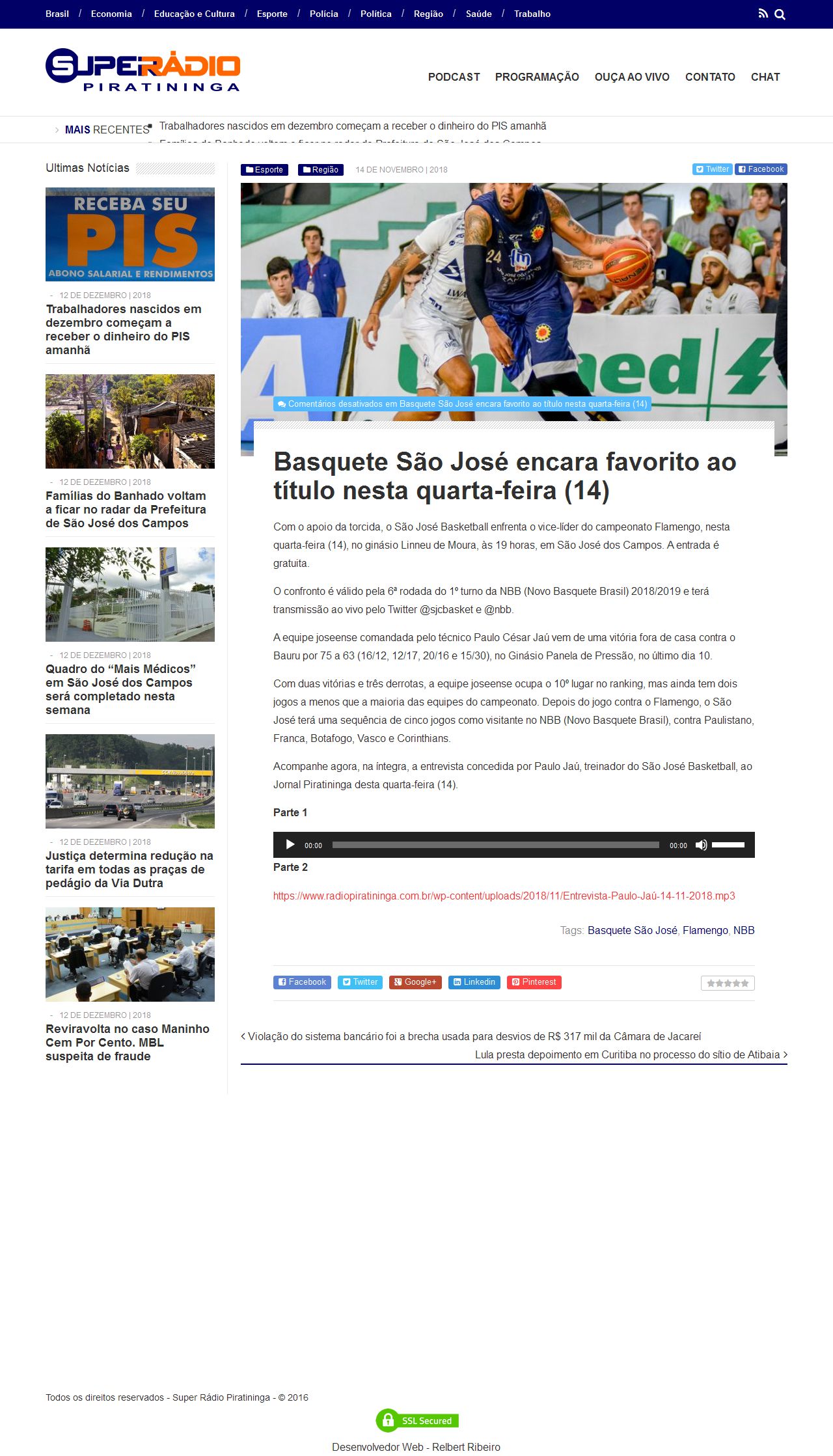 14/11/2018 - Rádio Piratininga