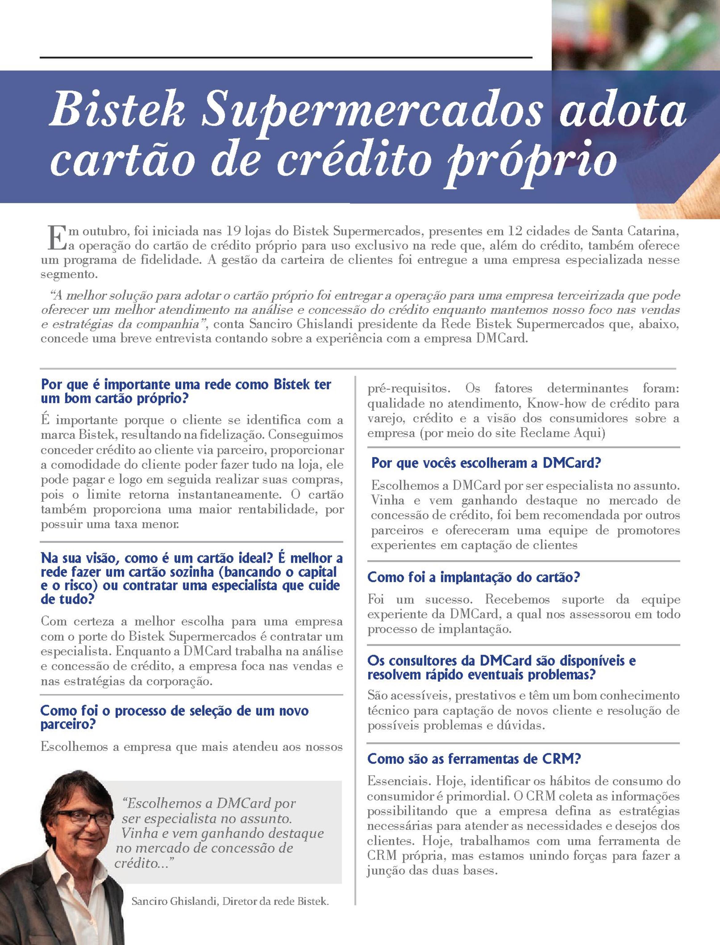 Bistek Supermercados adota cartão de crédito própio