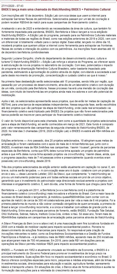 BNDES lança mais uma chamada do Matchfunding BNDES + Patrimônio Cultural