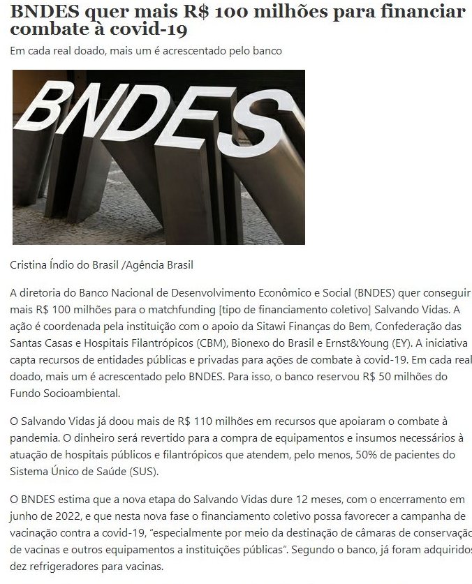 BNDES quer mais R$ 100 milhões para financiar combate à covid-19