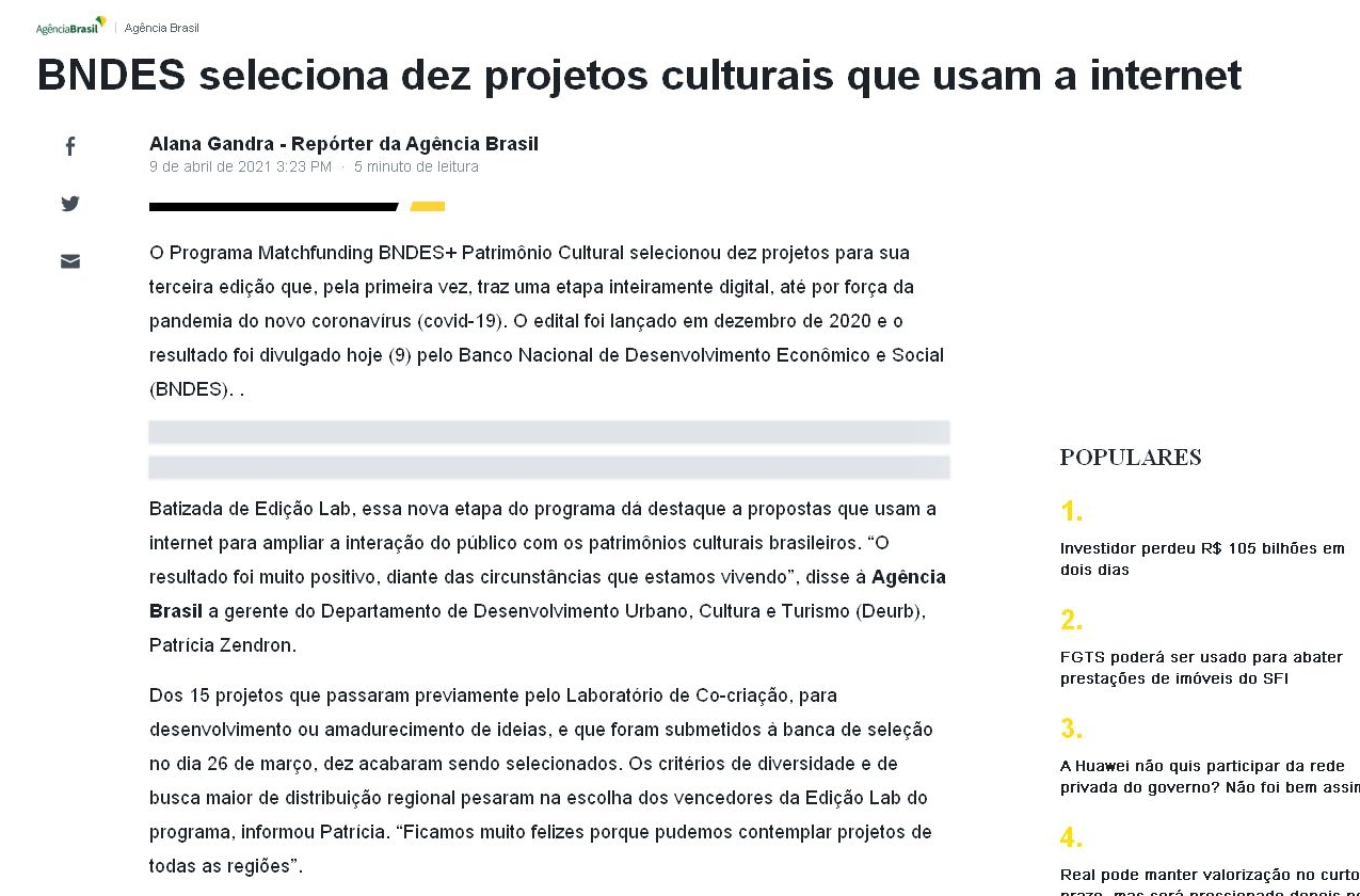 BNDES seleciona dez projetos culturais que usam a internet