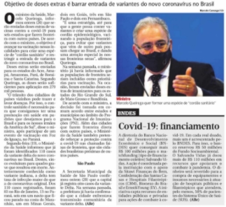 Brasil GAZETA DE PIRACICABA 11Piracicaba, quarta-feira, 21 de julho de 2021Reforço nas fronteiras Objetivo de doses extras é barrar entrada de variant