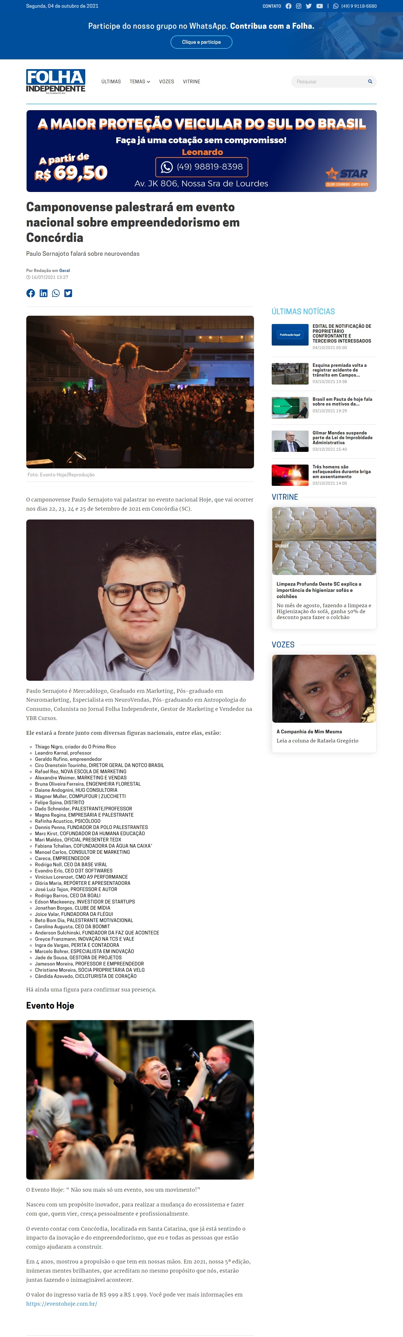 16/07/2021 - Folha Independente