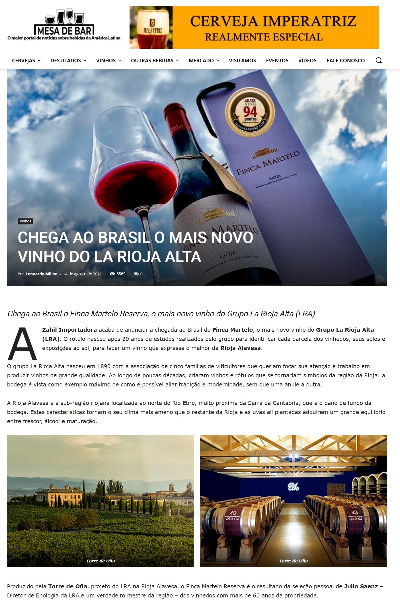 CHEGA AO BRASIL O MAIS NOVO VINHO DO LA RIOJA ALTA