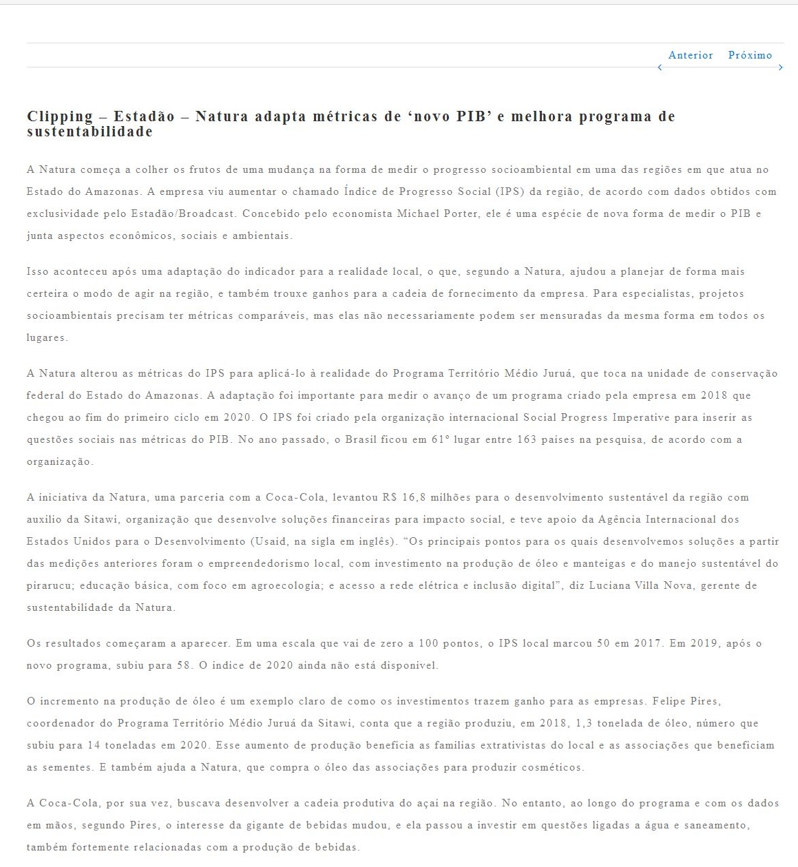 Clipping - Estadão - Natura adapta métricas de ‘novo PIB’ e melhora programa de sustentabilidade