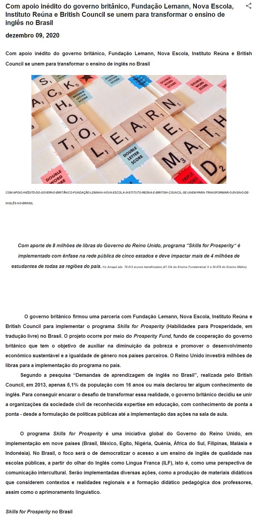 Com apoio inédito do governo britânico, Fundação Lemann, Nova Escola, Instituto Reúna e British Council se unem para transformar o ensino de inglês no
