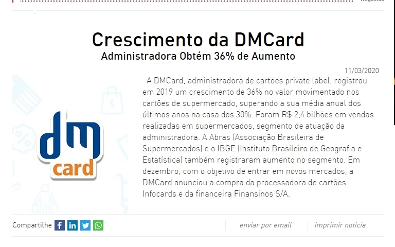 Cresciment da DMCard - Administradora obtém 36% de aumento