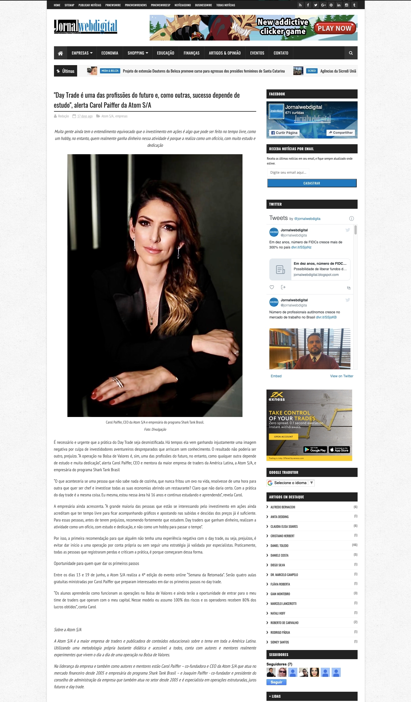 "Day Trade é uma das profissões do futuro e, como outras, sucesso depende de estudo", alerta Carol Paiffer da Atom S/A
