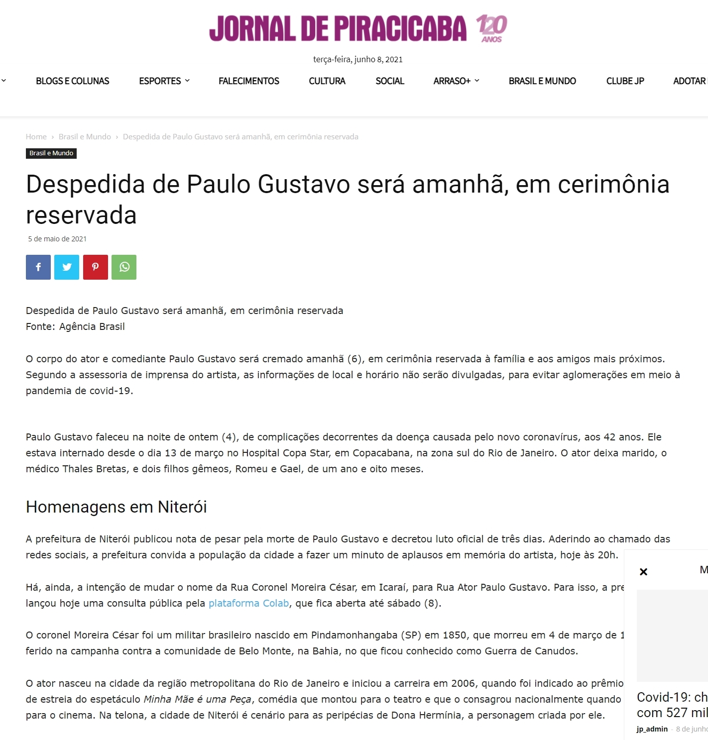 https://www.jornaldepiracicaba.com.br/despedida-de-paulo-gustavo-sera-amanha-em-cerimonia-reservada