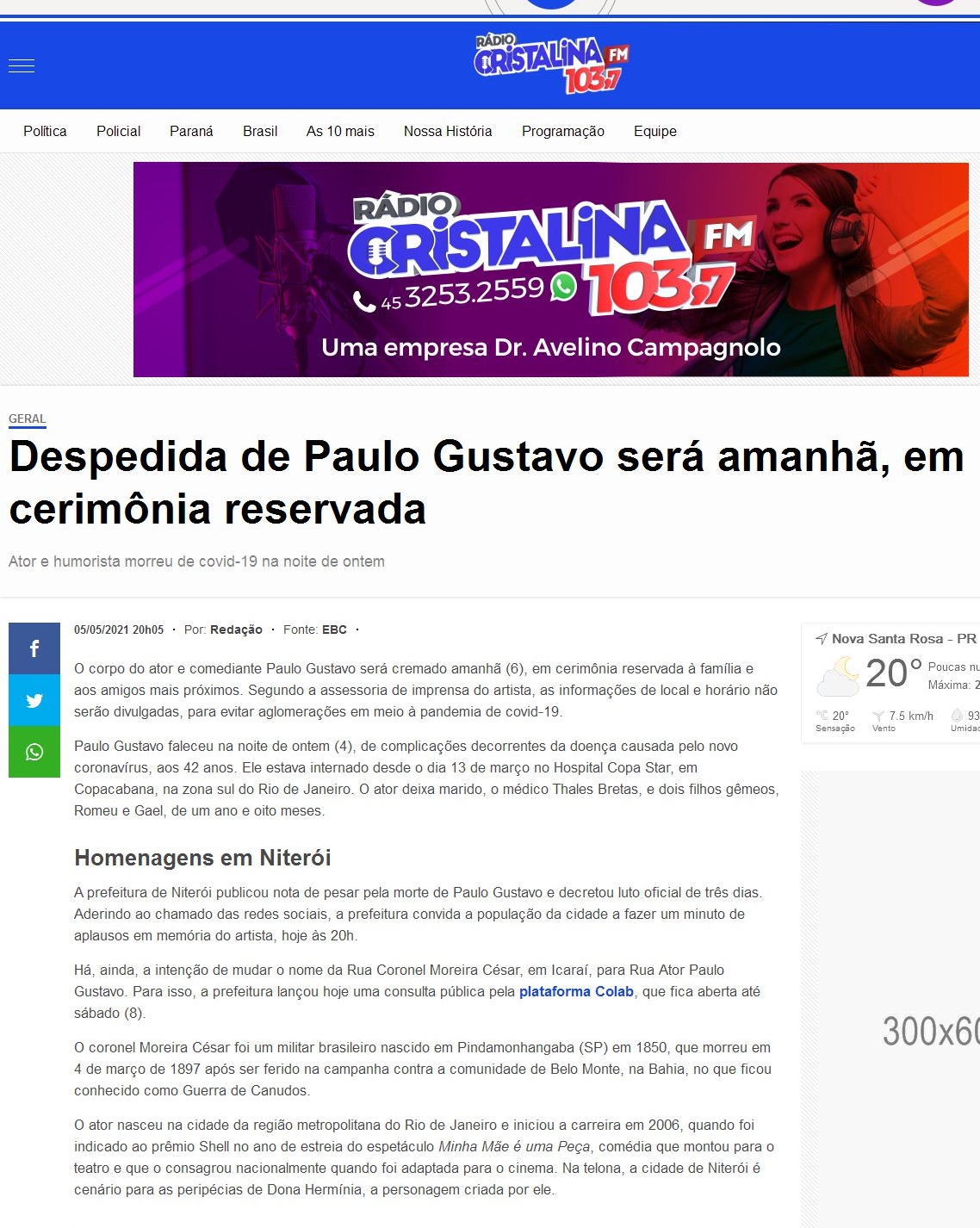 https://www.radiocristalina.com.br/noticia/4240/despedida-de-paulo-gustavo-sera-amanha-em-cerimonia-reservada