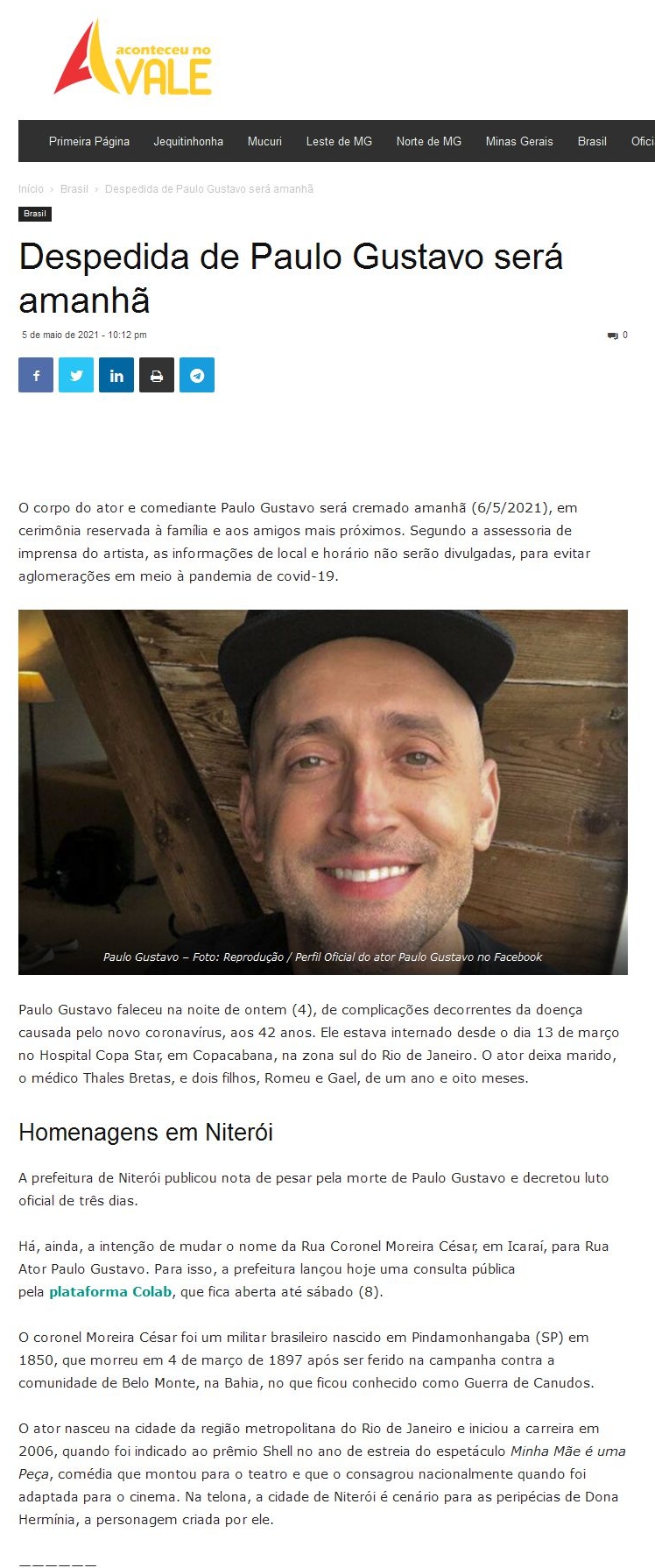 Despedida de Paulo Gustavo será amanhã
