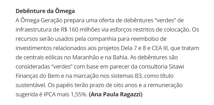 Destaques - Debênture da Ômega