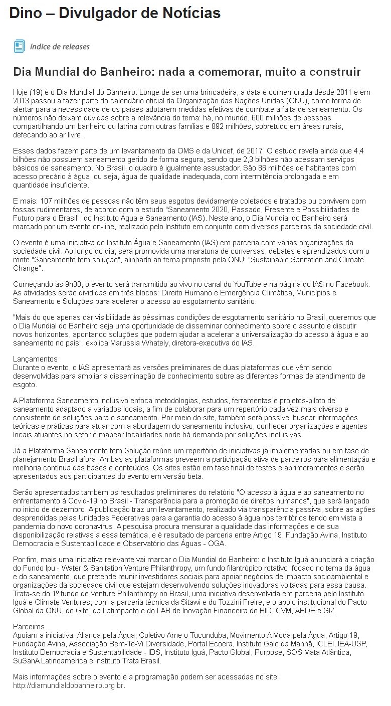 Dia Mundial do Banheiro: nada a comemorar, muito a construir