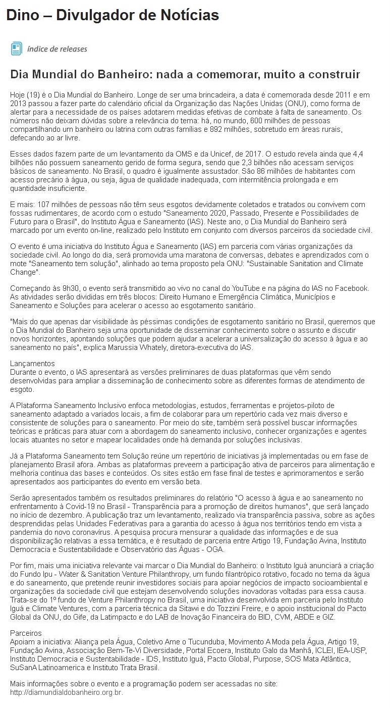 Dia Mundial do Banheiro: nada a comemorar, muito a construir