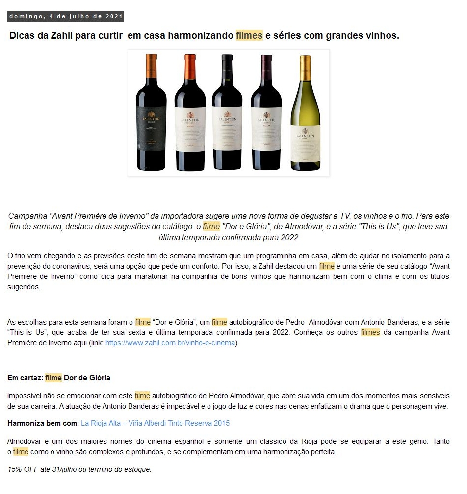 Dicas da Zahil para curtir em casa harmonizando filmes e séries com grandes vinhos.