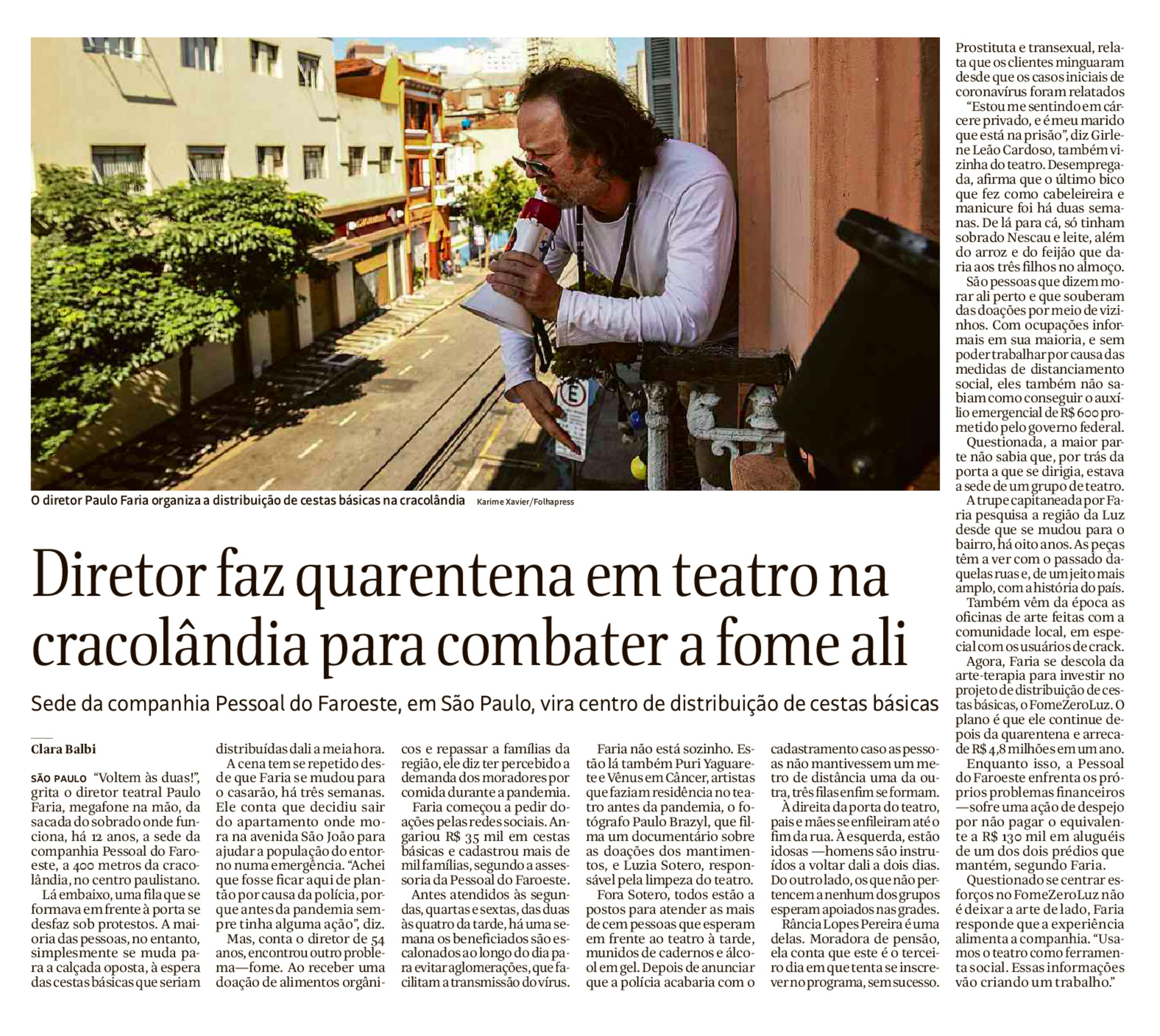 Diretor faz quarentena em teatro na cracolândia para combater a fome ali