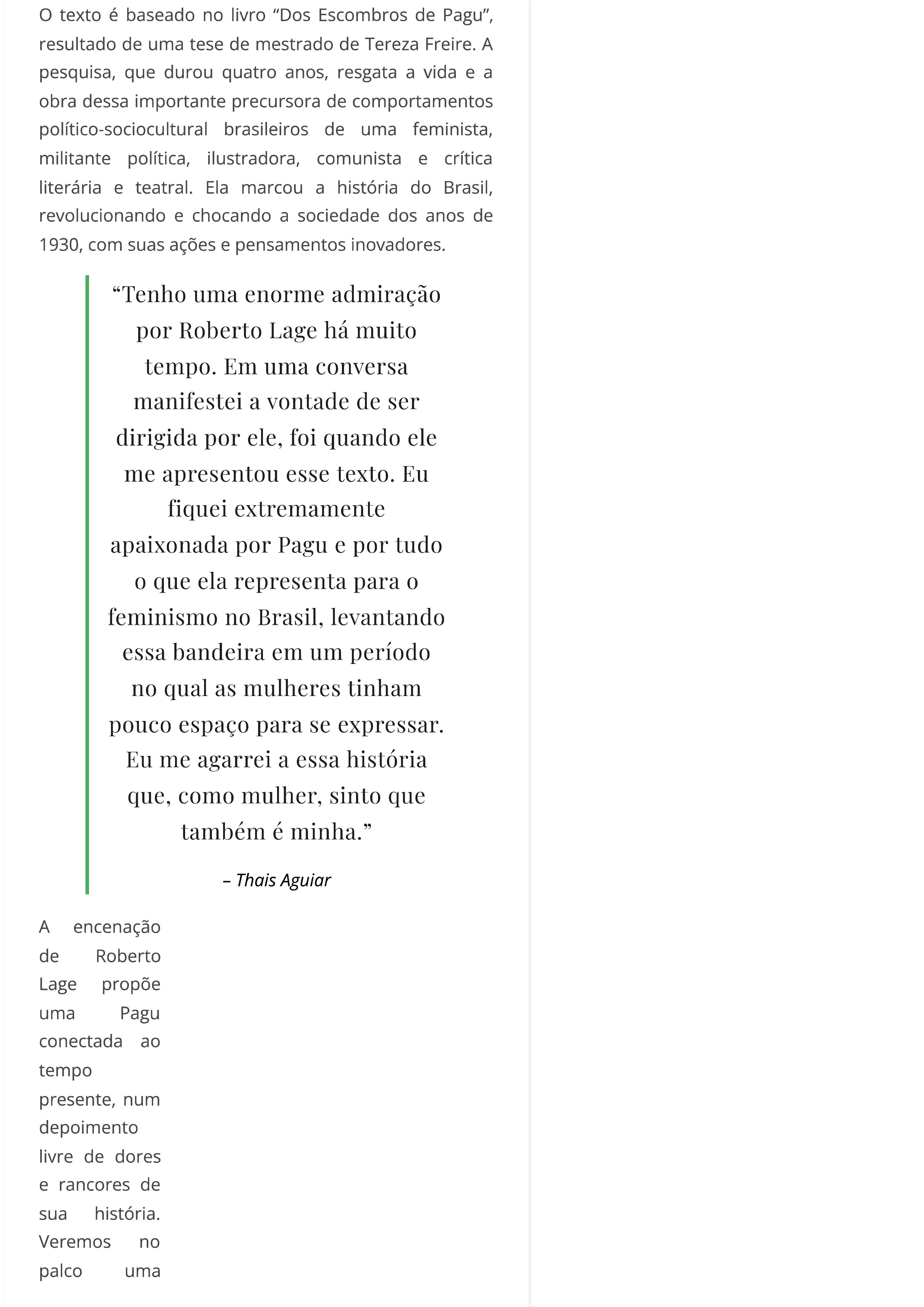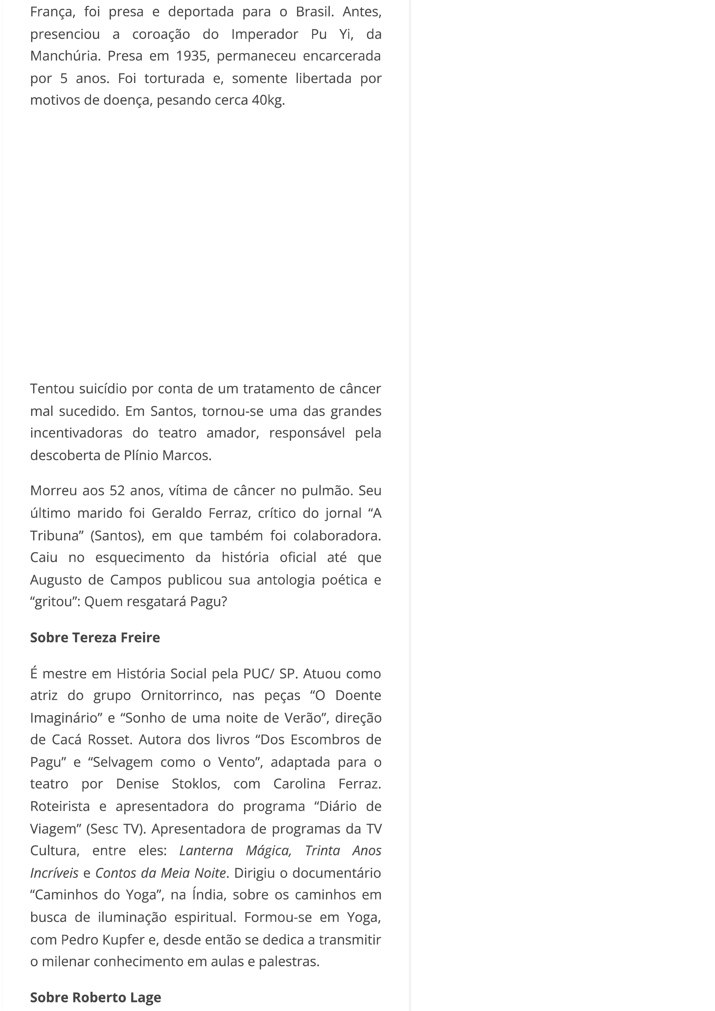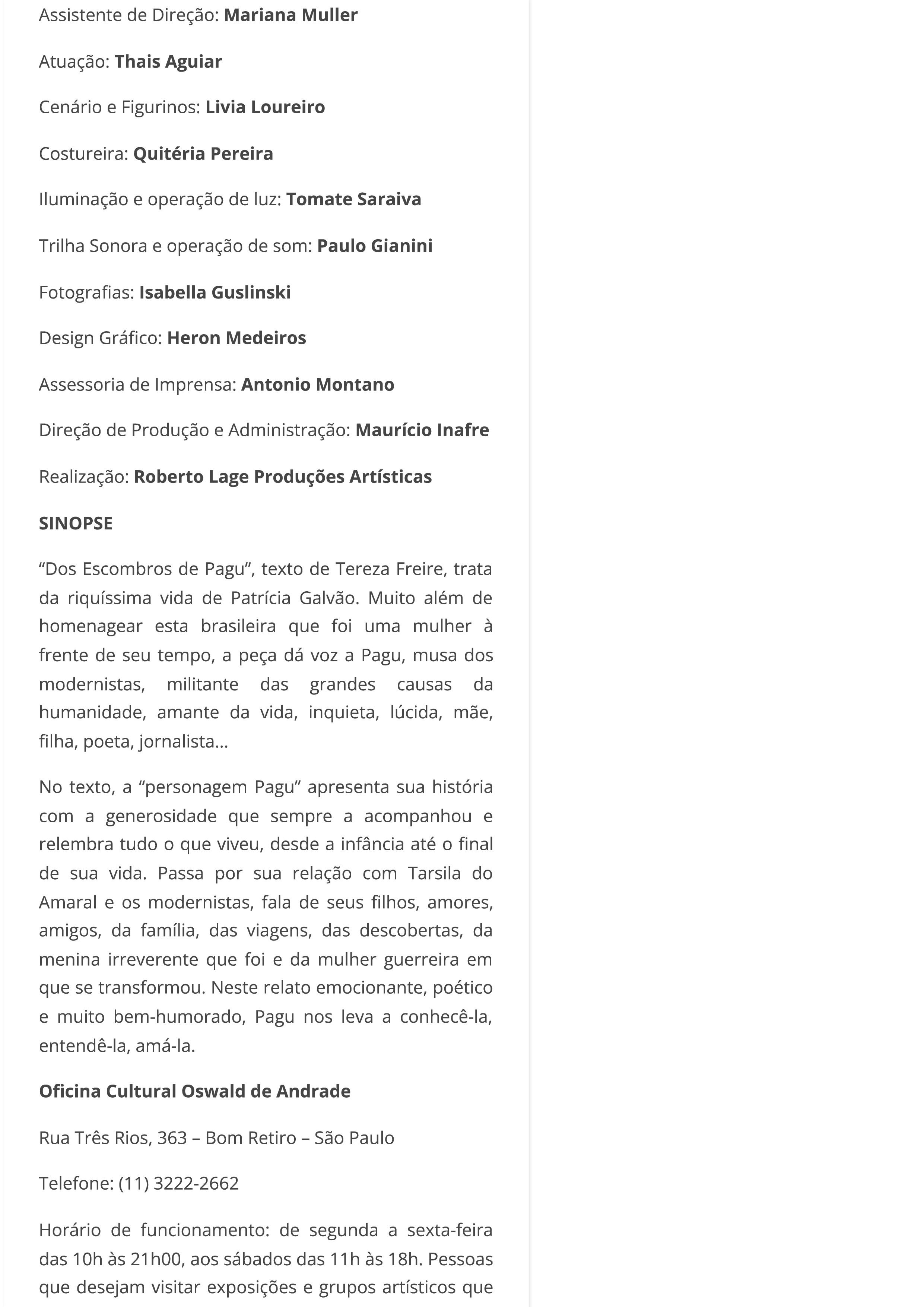 Diretor Roberto Lage leva vida de Pagu aos palcos da Oficina Cultural Oswald de Andrade no centenário da Semana de Arte Moderna de 1922