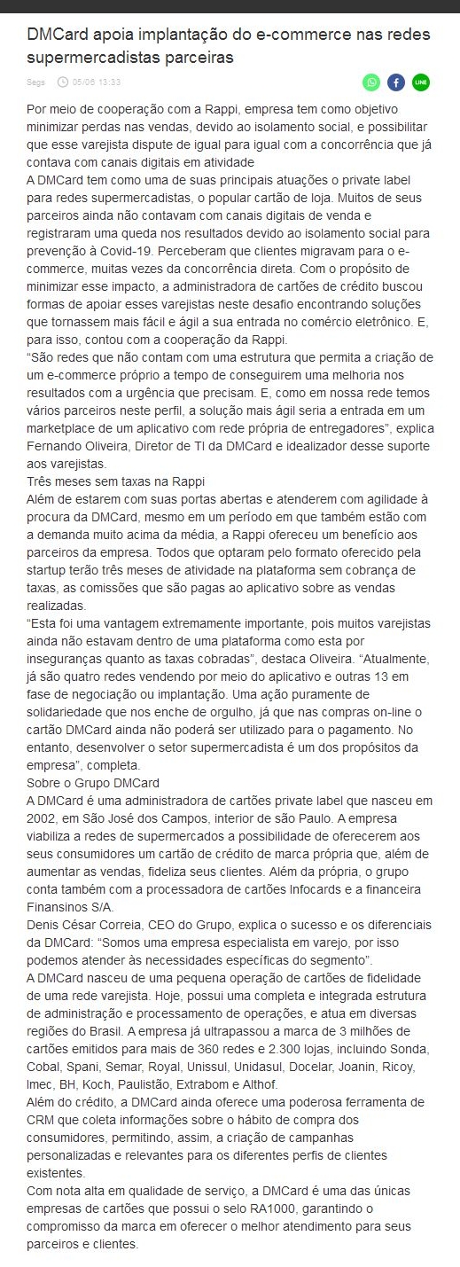 DMCard apoia implantação do e-commerce nas redes supermercadistas parceiras