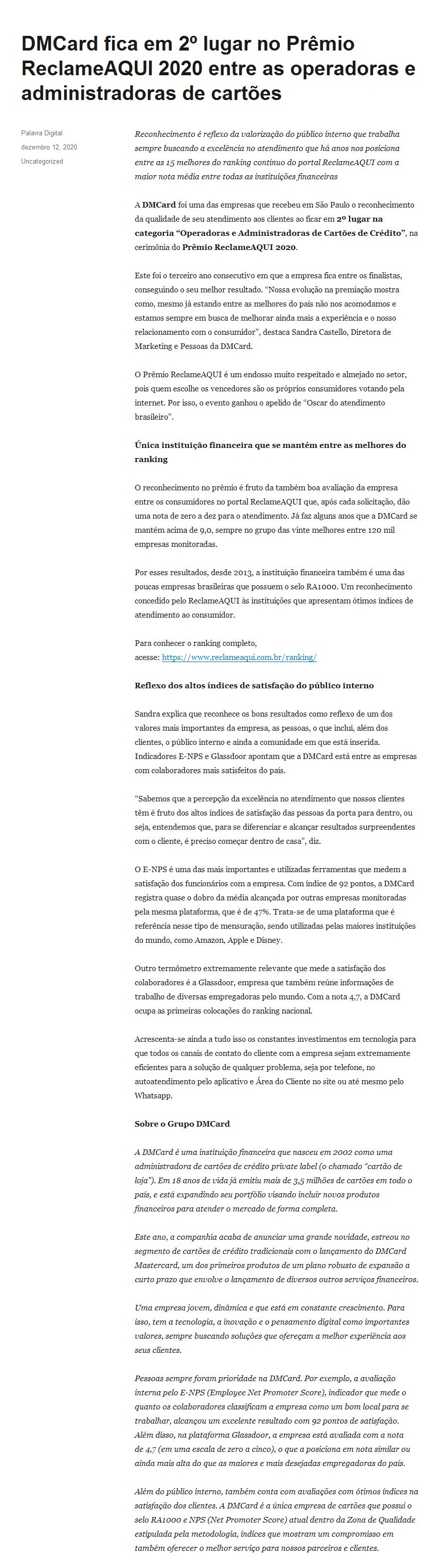 https://palavradigital.wordpress.com/2020/12/12/dmcard-fica-em-2o-lugar-no-premio-reclameaqui-2020-entre-as-operadoras-e-administradoras-de-cartoes
