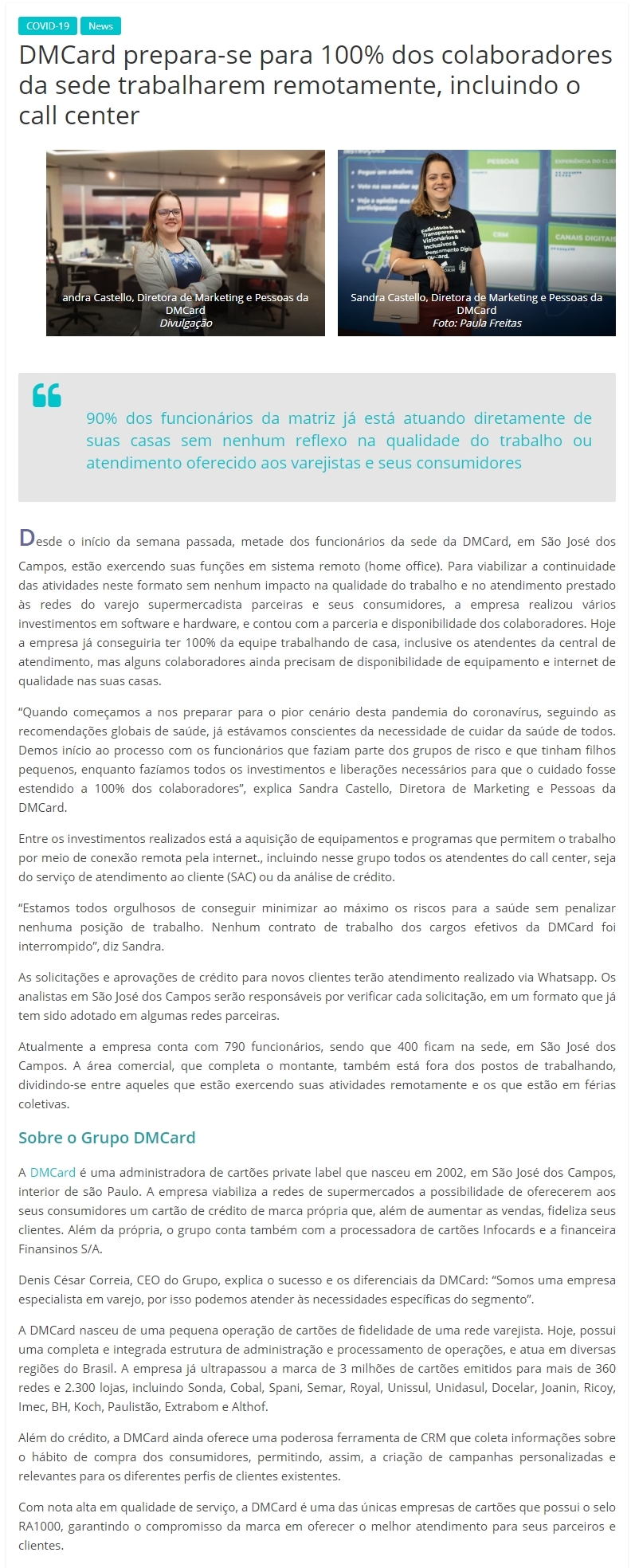 DMCard prepara-se para 100% dos colaboradores da sede trabalharem remotamente, incluindo o call center
