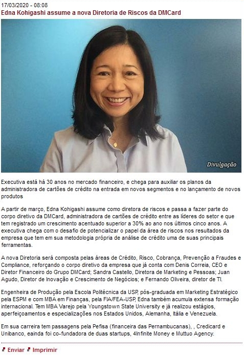 Edna Kohigashi assume a nova Diretoria de Riscos da DMCard