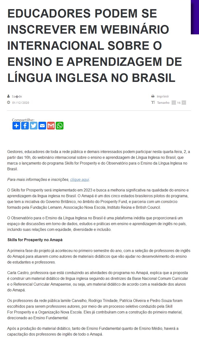 Educadores podem se inscrever em webinário internacional sobre o ensino e aprendizagem de língua inglesa no Brasil | Amapá Digital