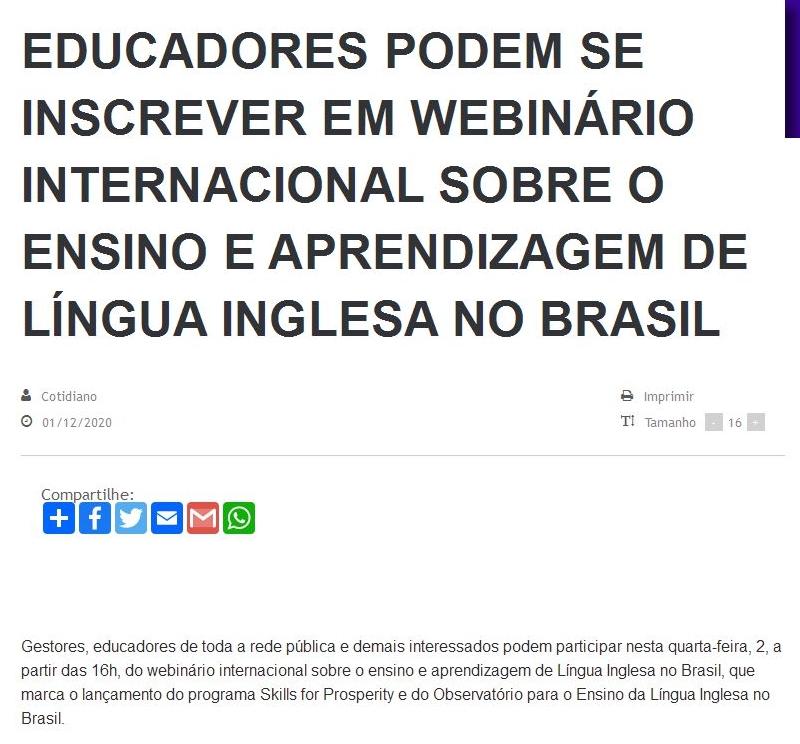 Educadores podem se inscrever em webinário internacional sobre o ensino e aprendizagem de língua inglesa no Brasil | Amapá Digital