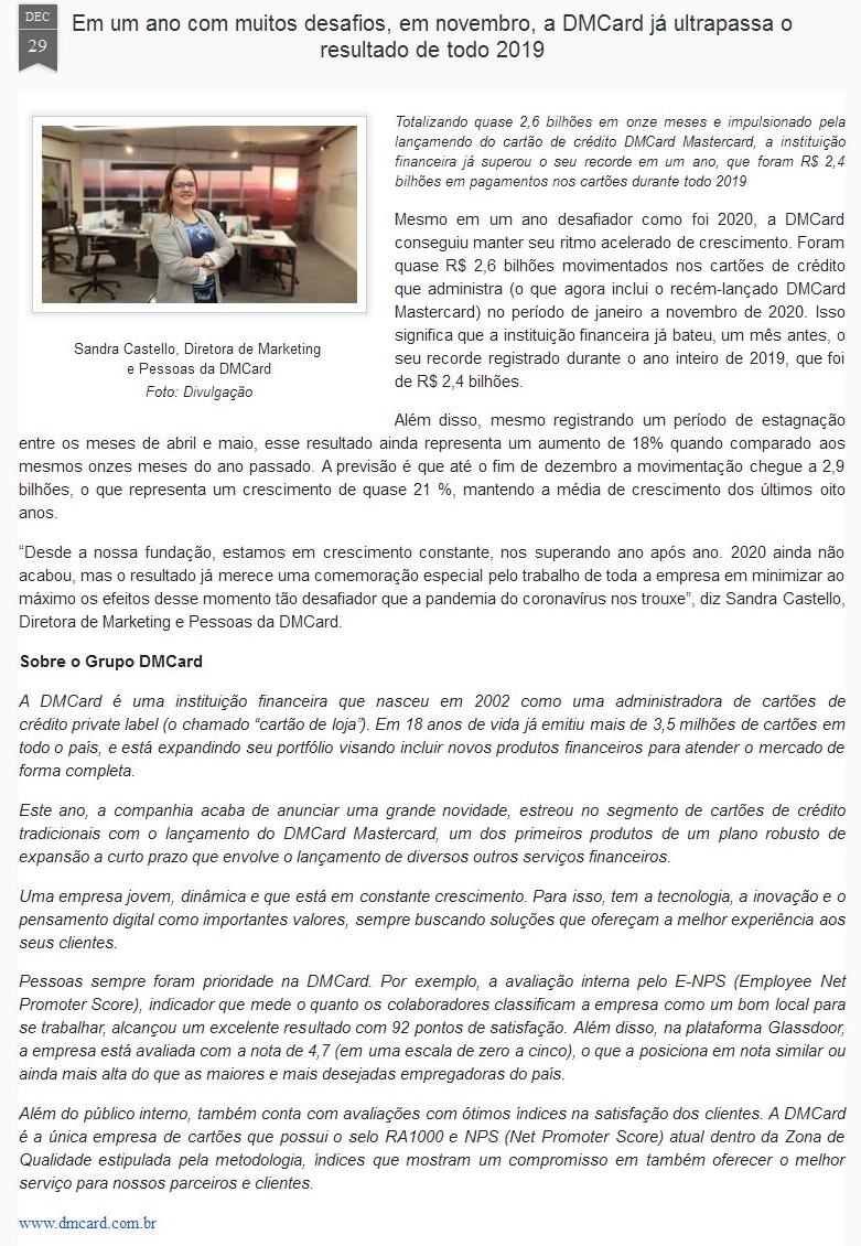 Em um ano com muitos desafios, em novembro, a DMCard já ultrapassa o resultado de todo 2019