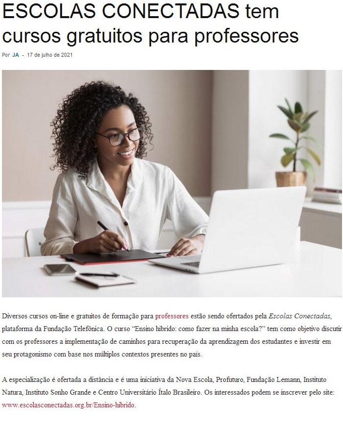 ESCOLAS CONECTADAS tem cursos gratuitos para professores