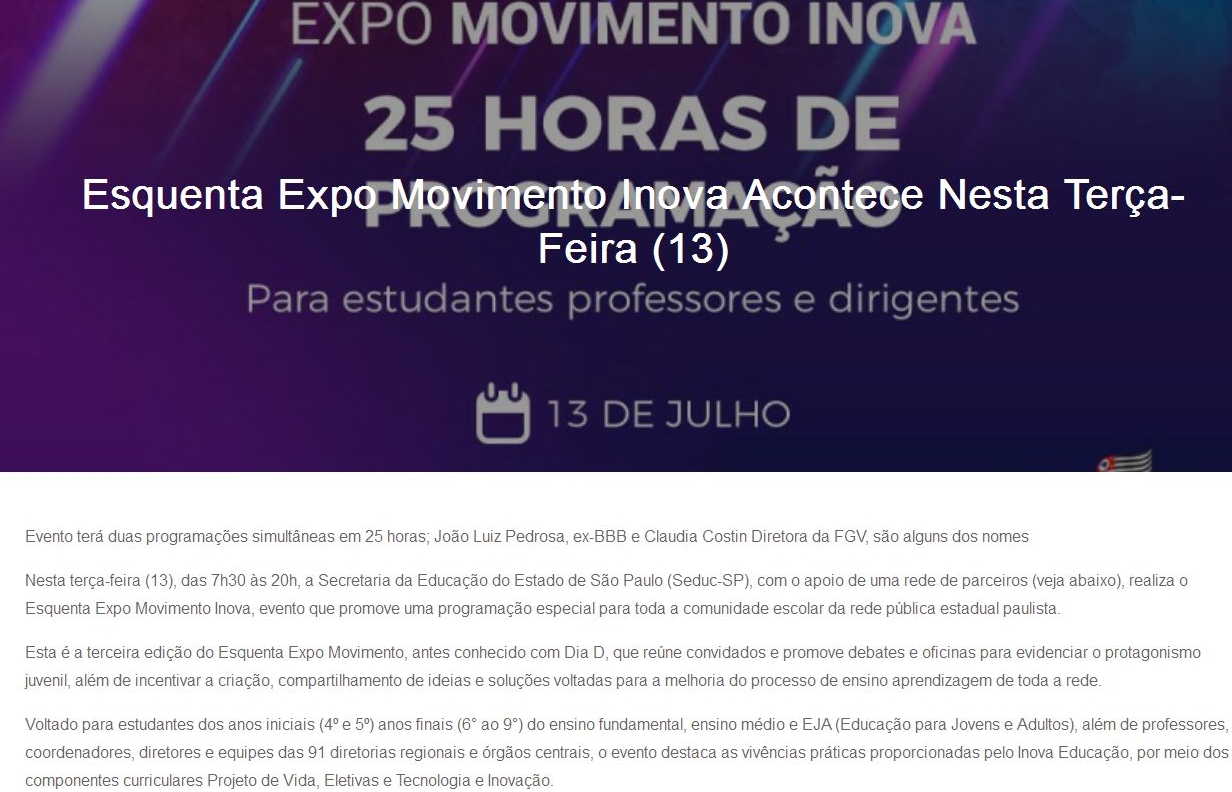 Esquenta Expo Movimento Inova Acontece Nesta Terça-Feira (13)