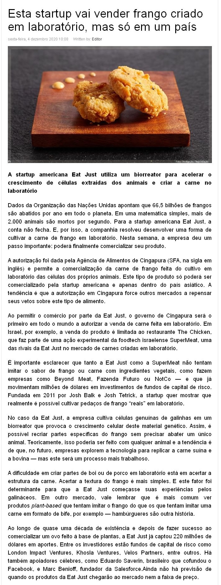 https://foodinnovation.com.br/esta-startup-vai-vender-frango-criado-em-laboratorio-mas-so-em-um-pais