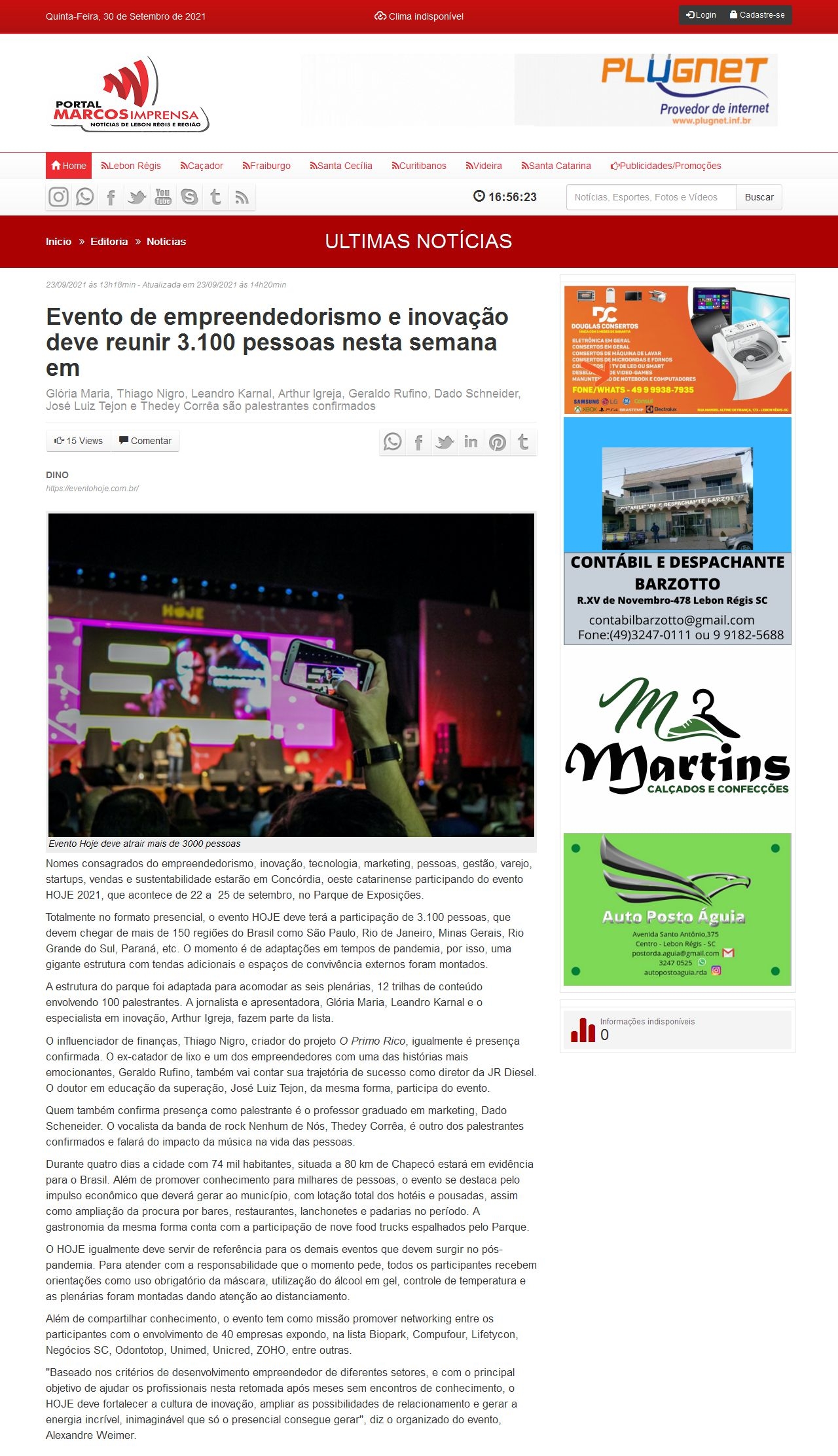 Evento de empreendedorismo e inovação deve reunir 3.100 pessoas nesta semana em Marcos Imprensa - Portal de notícias de Lebon Régis e Região Portal Ma