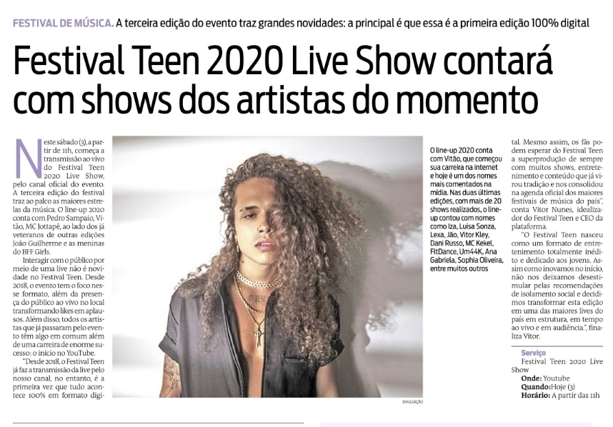 Festival Teen 2020 Live SHow contará com shows dos artistas do momento