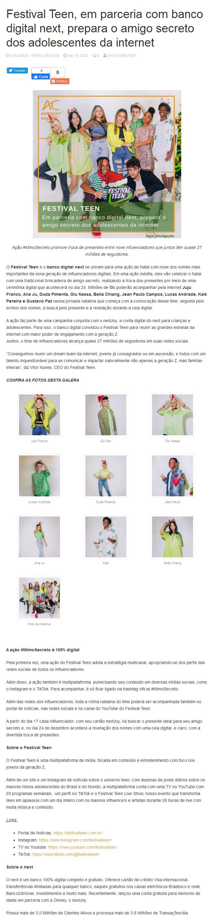 Festival Teen, em parceria com banco digital next, prepara o amigo secreto dos adolescentes da internet