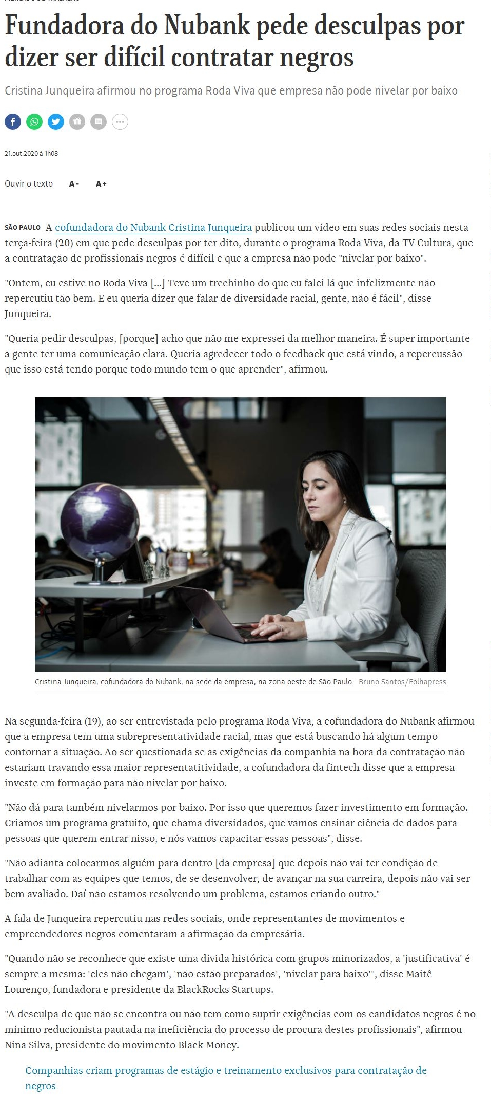https://www1.folha.uol.com.br/mercado/2020/10/fundadora-do-nubank-pede-desculpas-por-dizer-ser-dificil-contratar-negros.shtml