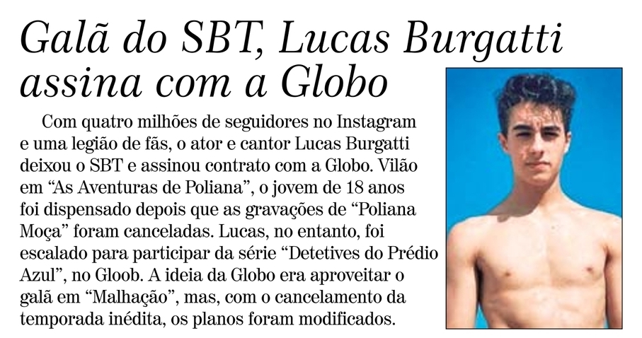 Gală do SBT, Lucas Burgatti assina com a Globo