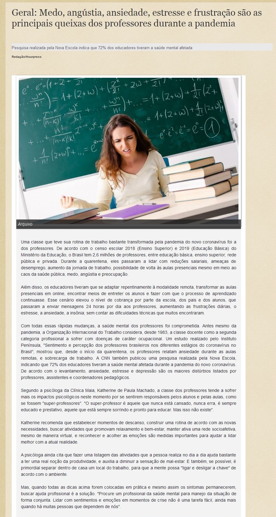 Geral: Medo, angústia, ansiedade, estresse e frustração são as principais queixas dos professores durante a pandemia