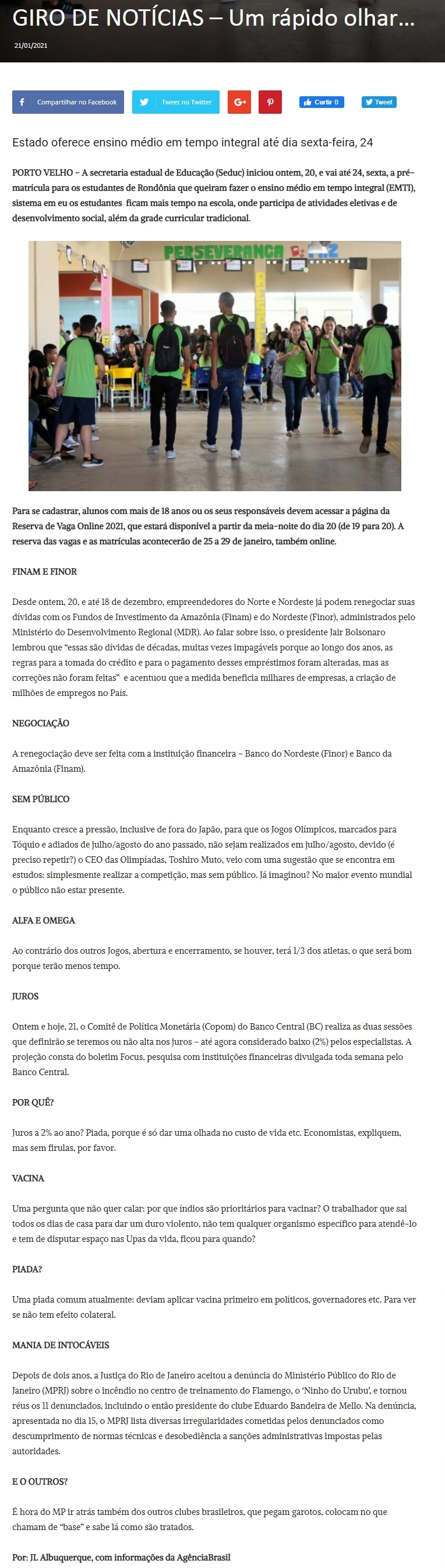 21/01/2021 - Expressão Rondônia