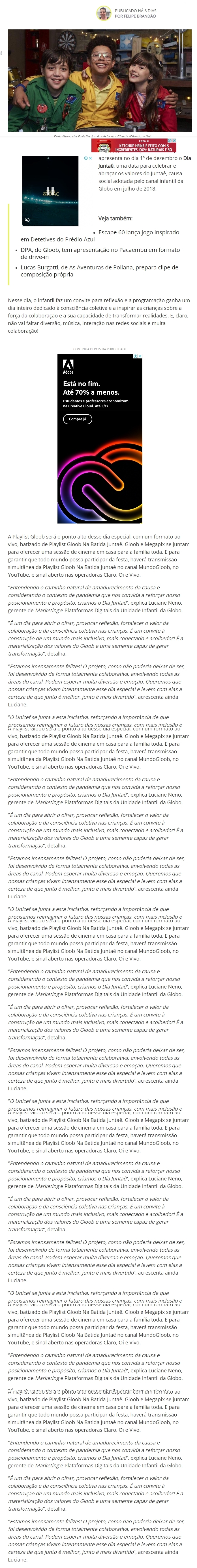 Gloob apresenta o Dia Juntaę Playlist Gloob será o ponto alto desse dia especial