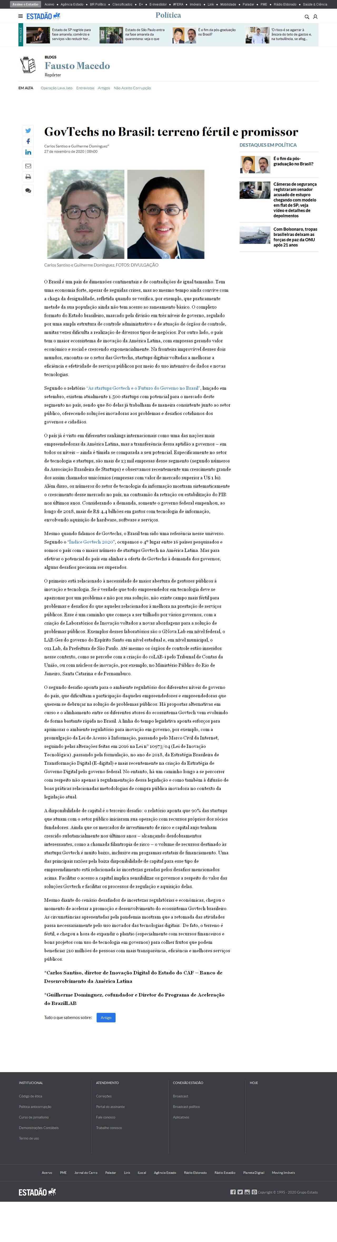 27/11/2020 - Estadão - Blog Fausto Macedo