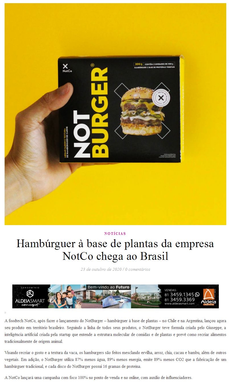 Hambúrguer à base de plantas da empresa NotCo chega ao Brasil