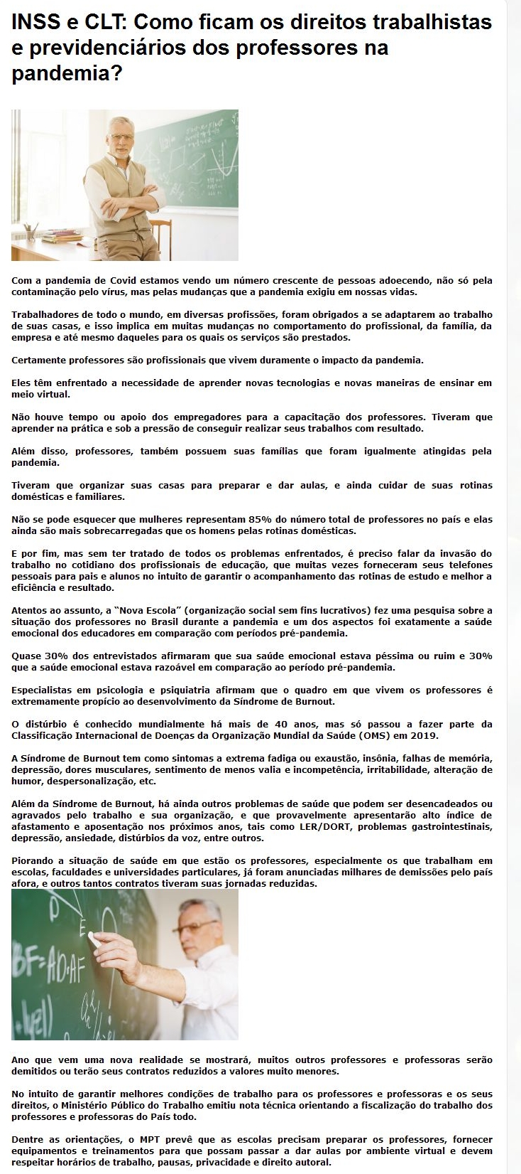 INSS e CLT: Como ficam os direitos trabalhistas e previdenciários dos professores na pandemia?