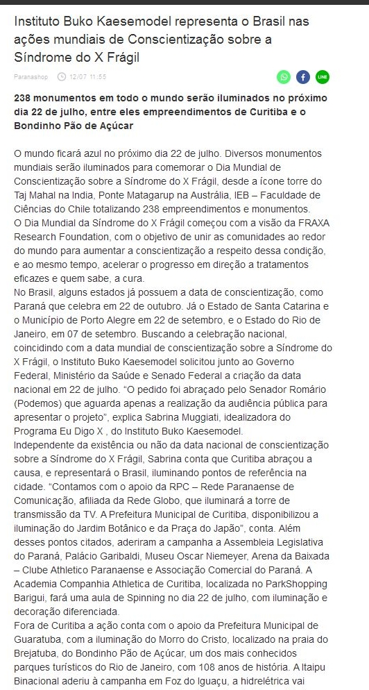 Instituto Buko Kaesemodel representa o Brasil nas ações mundiais de Conscientização sobre a Síndrome do X Frágil
